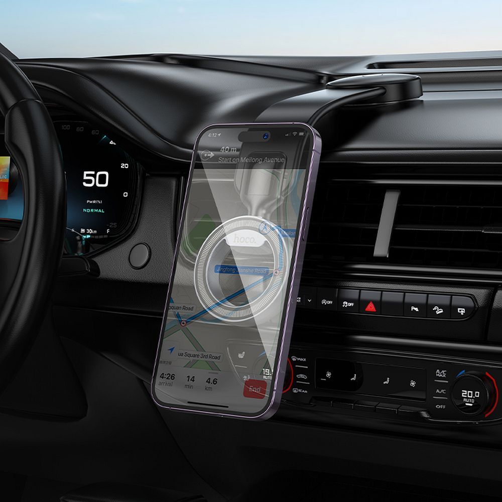 HOCO H71 is a durable magnetic car holder, ideal for securely fixing the phone on the car dashboard. With a minimalist design and a strong magnet,