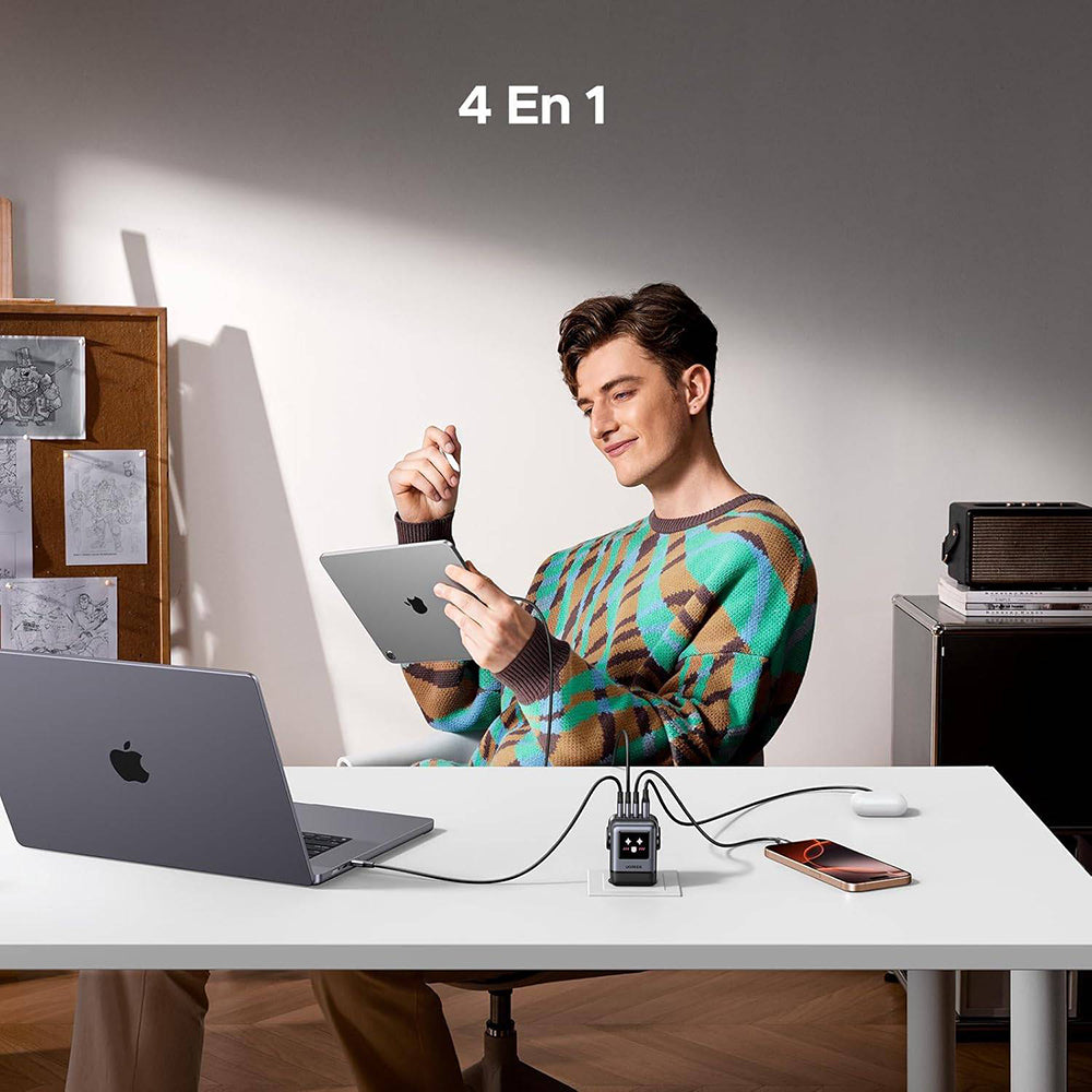 Featuring four ports (3 USB-C and 1 USB-A), it allows the simultaneous charging of up to four devices, offering maximum flexibility.