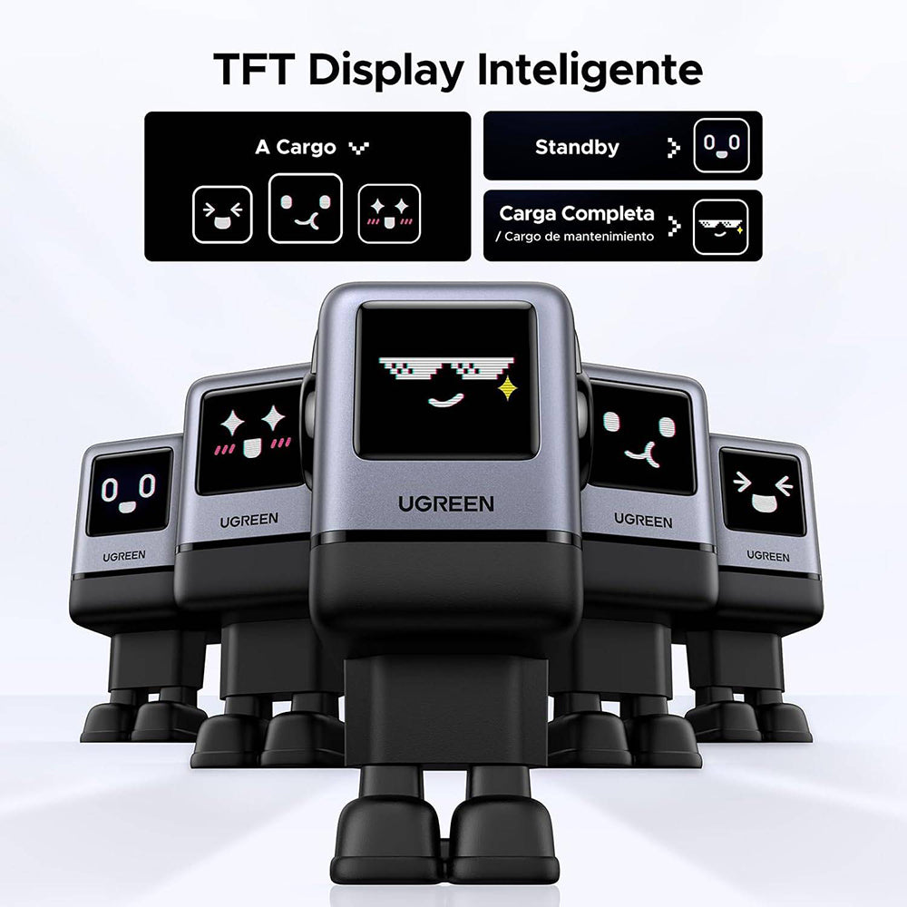 The UGREEN X688 Uno charger impresses with its creative robot-shaped design, complemented by an updated TFT screen that displays