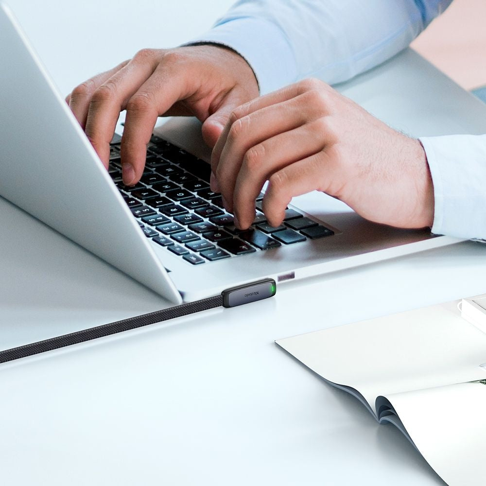 The Mcdodo cable combines a flat design with a 90-degree ergonomic connector, providing stable charging, efficient transfer, and durability for daily use.