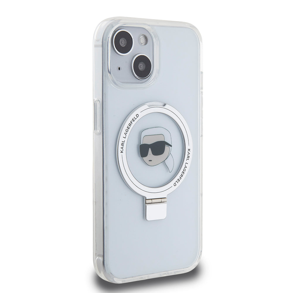 Θήκη MagSafe για Apple iPhone 15, Karl Lagerfeld, Ring Stand Karl's Head, Λευκή