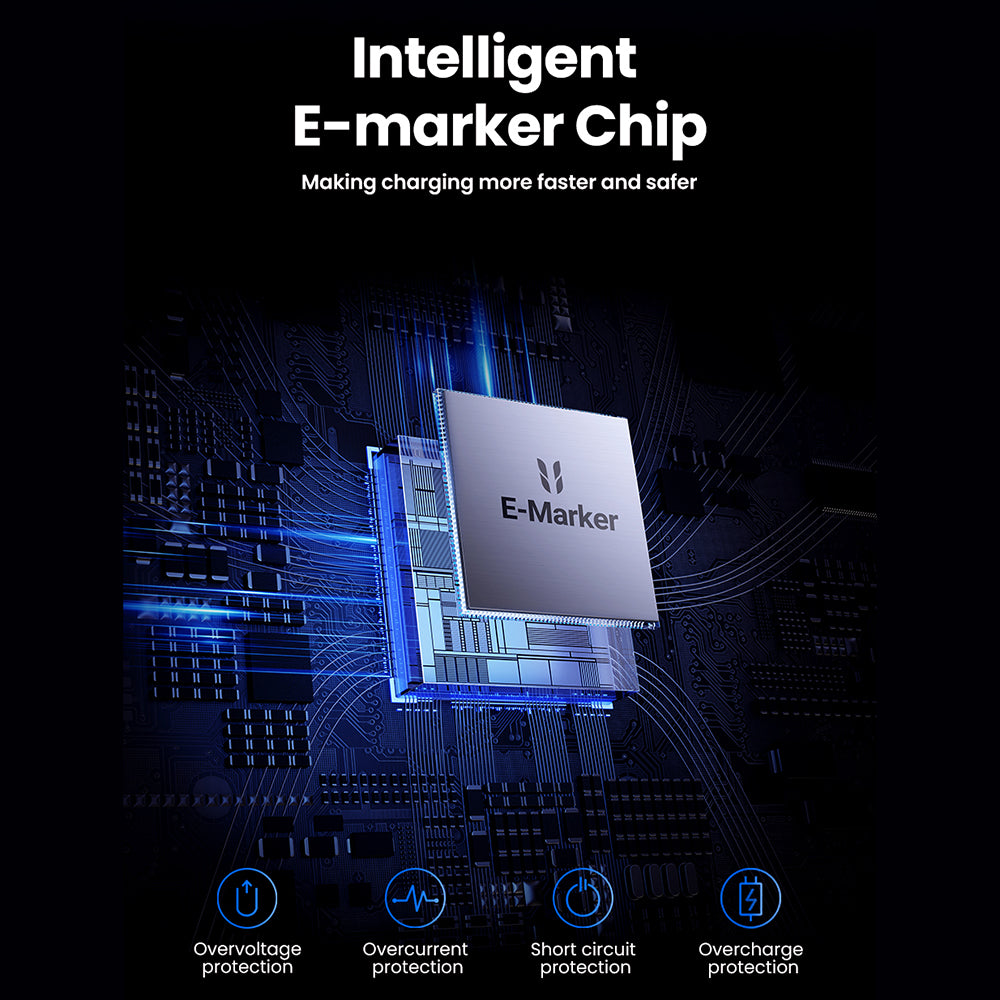 60 λεπτά - 2.5 φορές πιο γρήγορα από τα συνηθισμένα καλώδια. Ο έξυπνος τσιπ E-marker ρυθμίζει αυτόματα την τάση και το ρεύμα για την ασφάλεια των συσκευών, προλαμβάνοντας