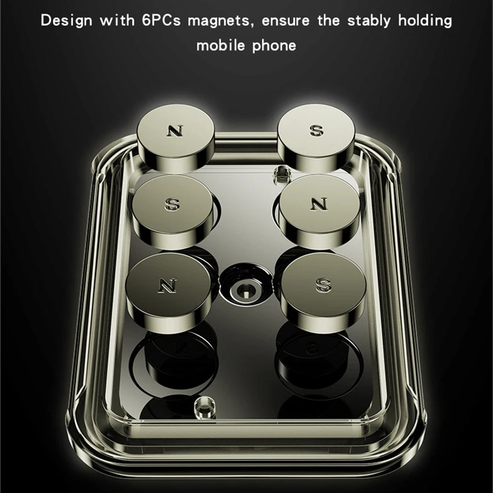 πολυμέσων. Εξοπλισμένη με 6 ισχυρούς μαγνήτες N52, η βάση εξασφαλίζει μια σταθερή και ασφαλή σύνδεση, διατηρώντας το τηλέφωνο σταθερό