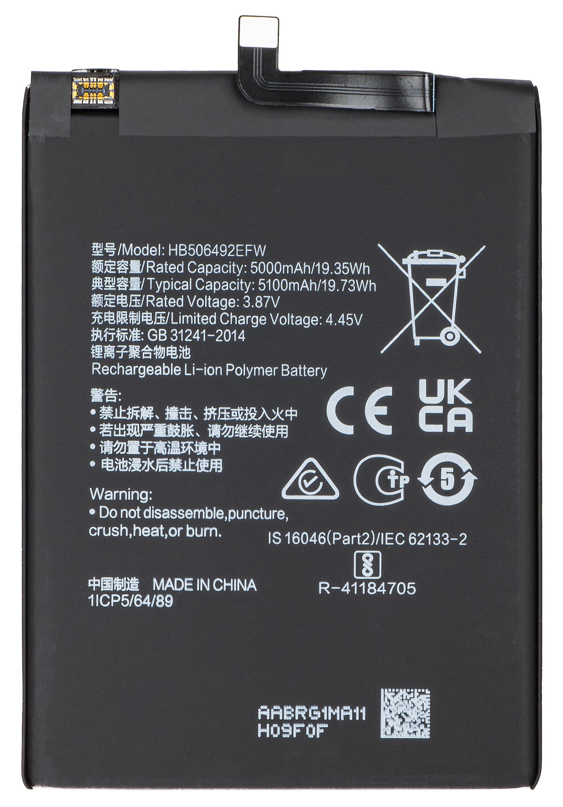 | Μοντέλο μπαταρίας | HB506492EFW |