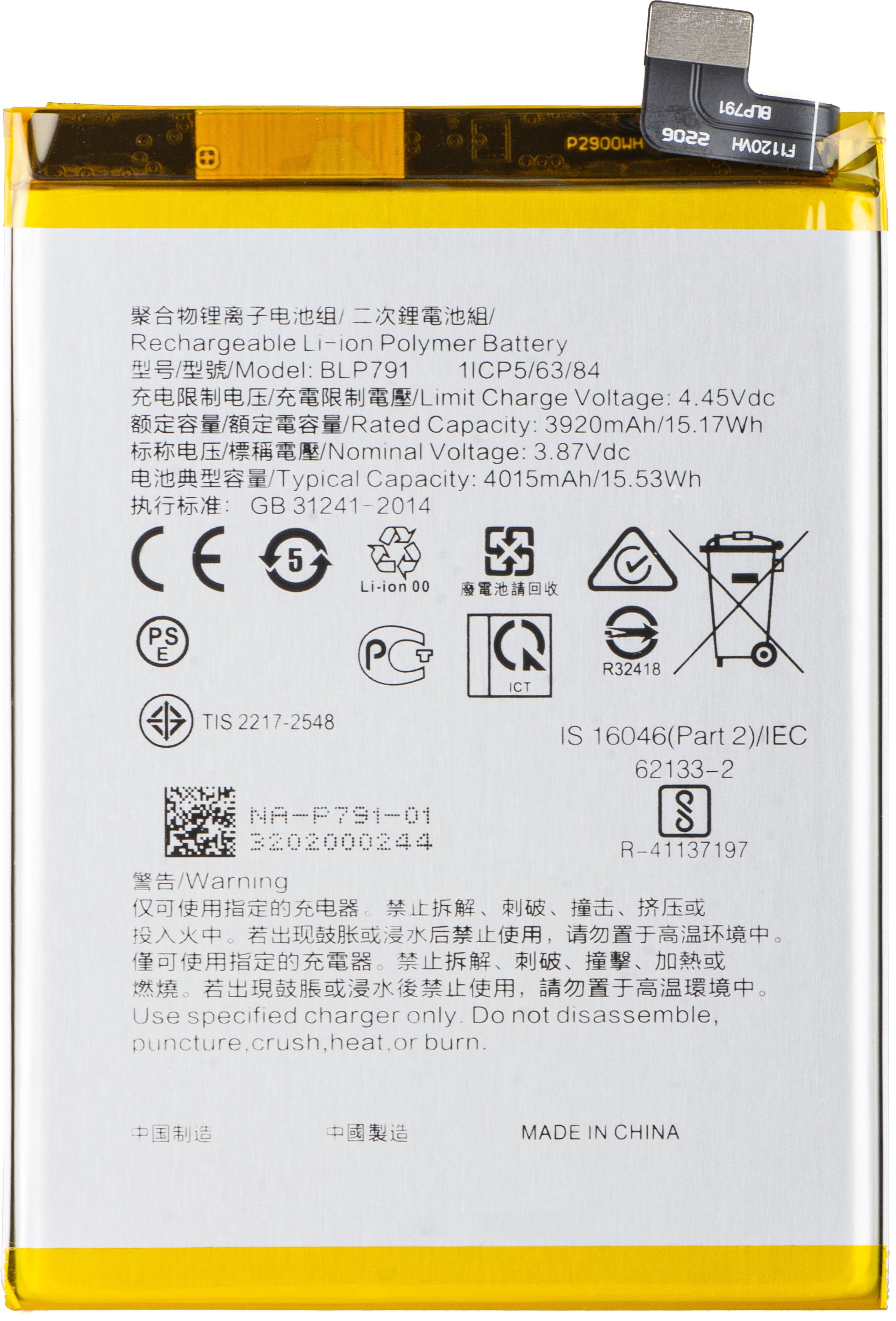 | Μοντέλο μπαταρίας | BLP791 |