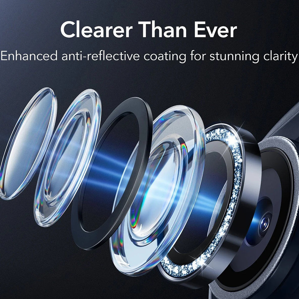 Προστατευτική Μεμβράνη Κάμερας Πίσω ESR Glitter Diamond Armorite για Apple iPhone 17 Pro Max / 17 Pro, Ενισχυμένο Γυαλί, Πλήρης Κόλληση, Μπλε